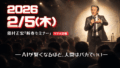 - 2026年 2月5日(木) 藤村正宏 新春セミナー<リアル開催>「AIが賢くなるほど 人間はバカでいい」 - 2025年12月17日